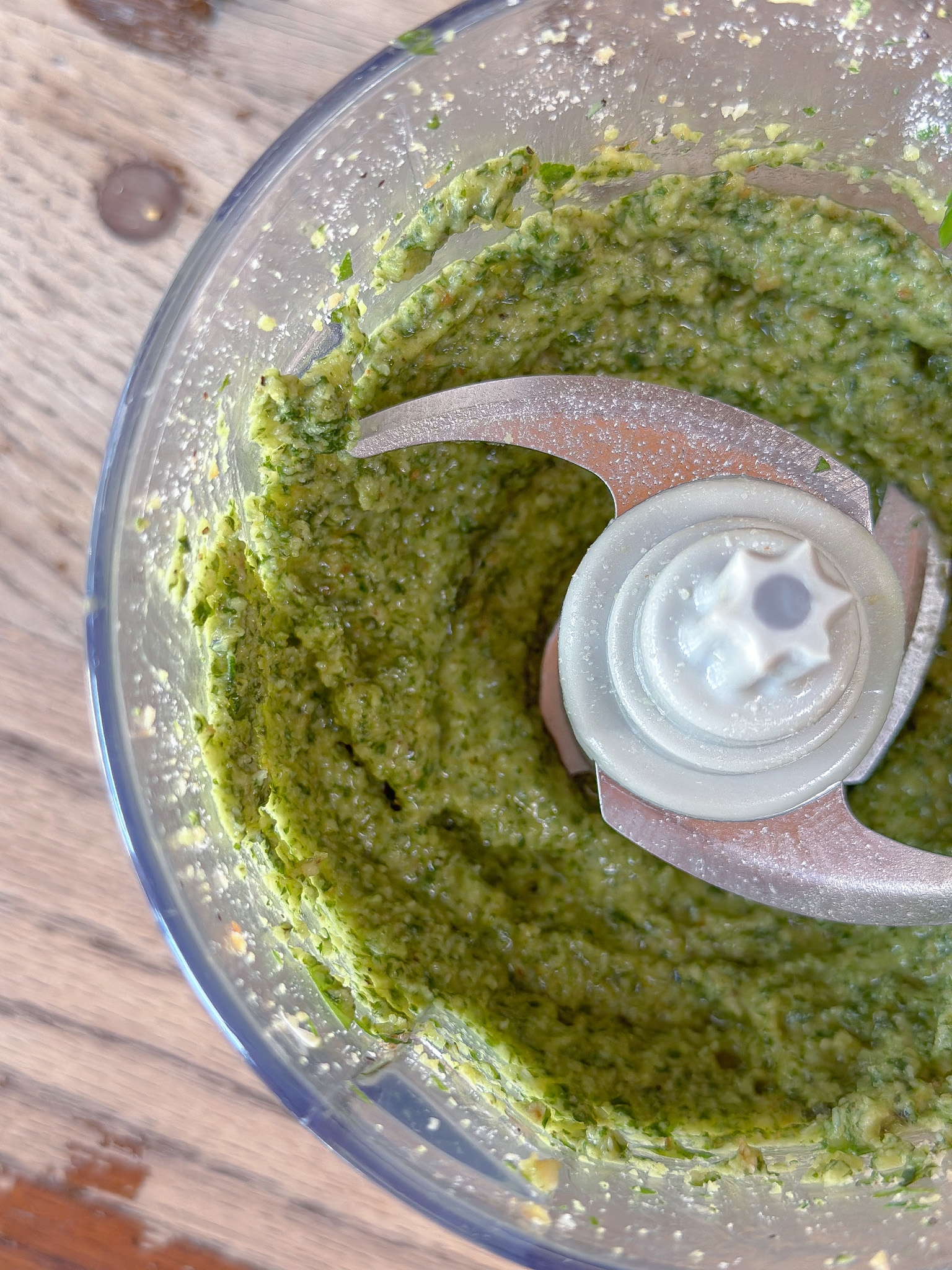 - Top off with olive oil then add the parmesan cheese and pulse until combined.